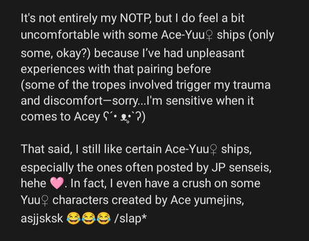 • mostly any ships with Ace as Uke/Subbbbbb (sori mi wifey too breedable) | (受けエー)